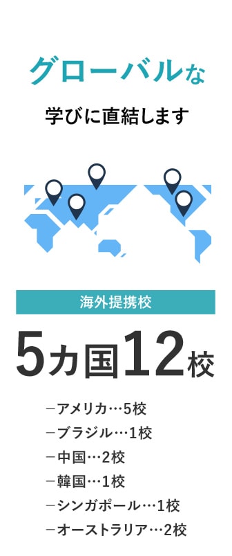 フィールドに生きる世界中の学校に扉を開く国際バカロレアプログラムや、英語を学ぶのではなく英語を使って学びを深めるイマージョン教育、国際交流やブートキャンプ式の短期留学などを通じて、世界を自分のフィールドに生きていくための準備をおこないます。