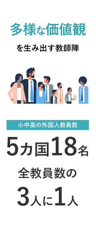 ユニークな教師陣世界中から集まったプロフェッショナルな教師陣が、ティーチャーやファリシテーター、メンターやコーディネータとなり、生徒の学び方を学ぶサポートを行います。